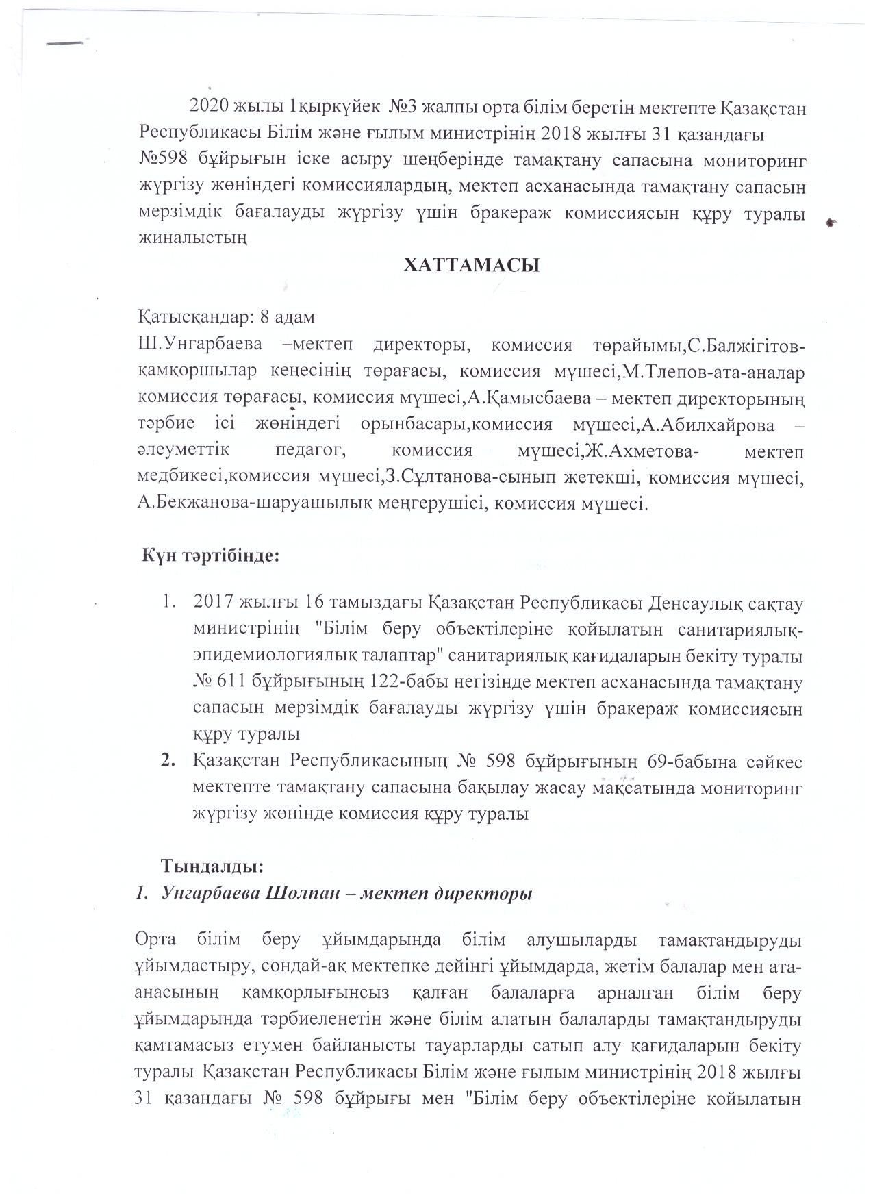 Бракераж комиссиясын құру туралы хаттама
