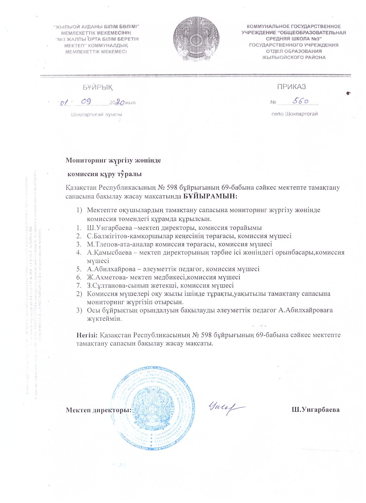Мониторинг жүргізу жөнінде комиссия құру туралы бұйрық