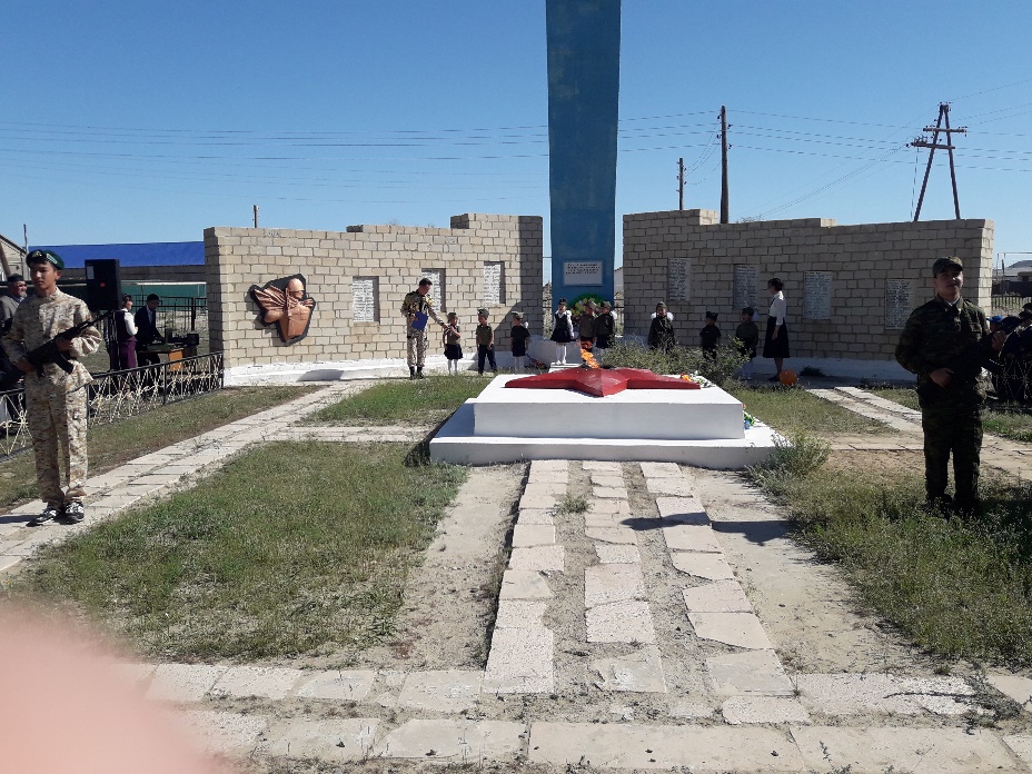 Ұлы Отан Соғысынан оралмаған боздақтарға ескерткіш гүл дестесі қойылды.