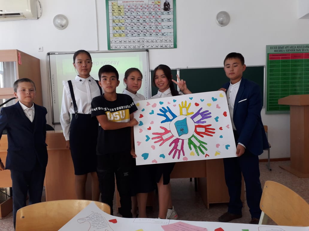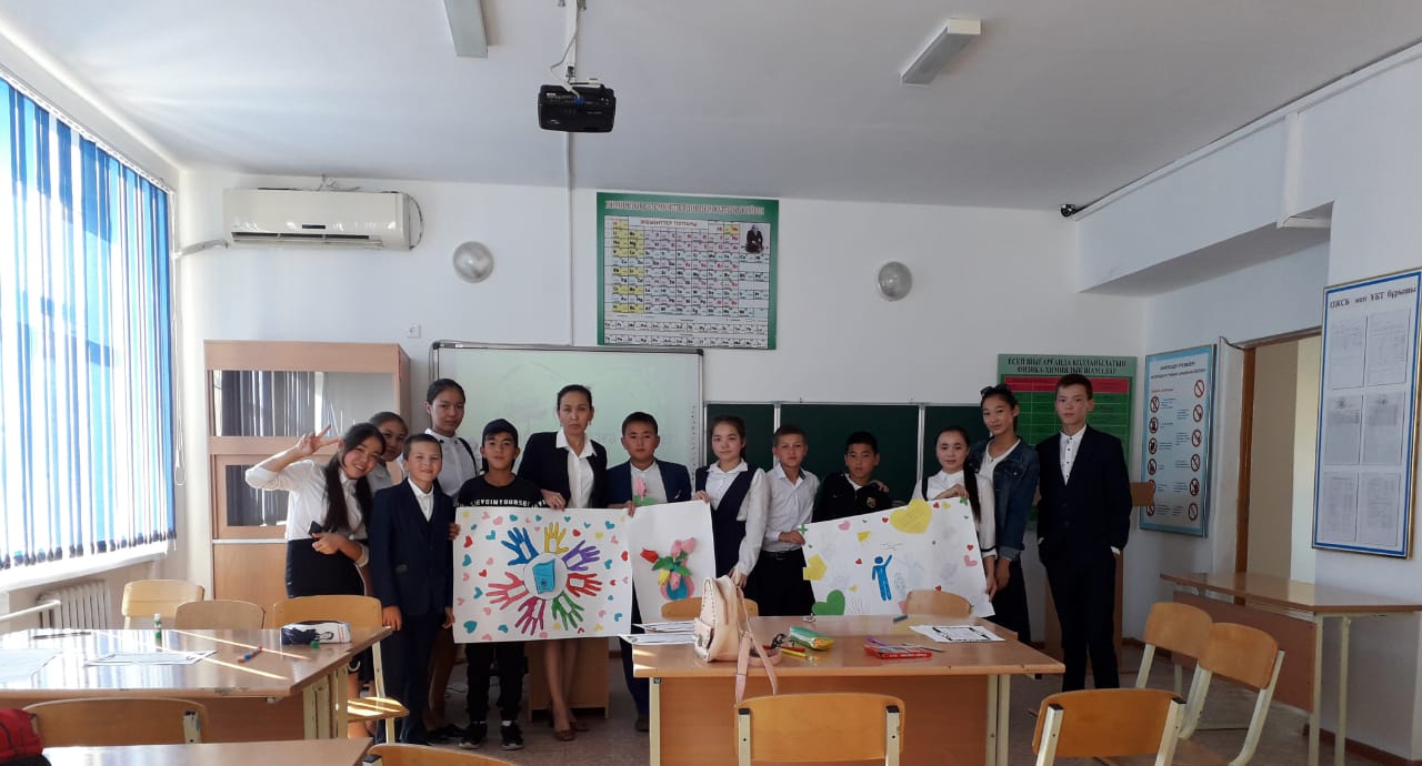 Мектеп психологы Алтынай Ибадоллаевна оқушыларға зорлық зомбылық туралы мағлұмат беру, адамның ең жаман қасиеті екенін айту,адамның ең басты құндылығы оның бостандығы екенін ұғындыру, оқушыларға адамзаттық құқықтарымен бас бостандықтарын қорғауы туралы үйрету,жаман әдеттерден бойларын аулақ ұстап, ондай әрекеттерге бамауға тәрбиелеу, адамгершілігі мол саналы азамат болып өсуіне ықпал жасау мақсатында оқушылар арасында "Біз зорлық-зомбылыққа қарсымыз" атты тренинг өткізді.