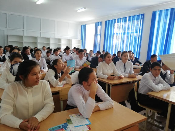 Мектептегі шағын орталық, мектепалды даярлық және 1-4 сынып оқушыларына «Жол қозғалысы ережелерін білу-қауіпсіздік негізі» ұлттық бағдарламасы бойынша «Жол қозғалысы ережелерін білу-қауіпсіздік негізі» әңгіме, Дүниежүзілік жүрек күніне «Бір әлем, бір үй, бір жүрек» ұлттық бағдарламасы бойынша «Қарбоз ағай туралы ертегі» әңгіме; 5-8 сынып оқушыларына «Дені сау жанұя-дені сау мемлекет» ұлттық жанұя күніне ұлттық бағдарламасы бойынша «Ұлдар мен қыздар арасындағы қарым қатынас» сынып сағаты, 9-11 сынып оқушыларымен «Дені сау жанұя-дені сау мемлекет» ұлттық жанұя күніне ұлттық бағдарламасы бойынша «Ар-намысыңды сақта!» тренинг, Дүниежүзілік жүрек күніне «Бір әлем, бір үй, бір жүрек» ұлттық бағдарламасы бойынша «Салауатты өмір салты принциптерін ұстану» тақырыбында дәріс өткізілді. Оқушылар үлкенге-құрмет, кішіге – ізет көрсетуді, бір-біріне жақсылық жасауды, жамандақтан аулақ болу, ар-намыс, абырой, күн тәртібі, дене жаттығулары мен таза ауаның, еңбекқорлықтың пайдасы, салауатты өмір салтын сақтау, зиянды заттардан (шылым, спиртті ішімдіктер, есірткі) аулақ ұстау туралы өте жақсы түсіндіріп берді.