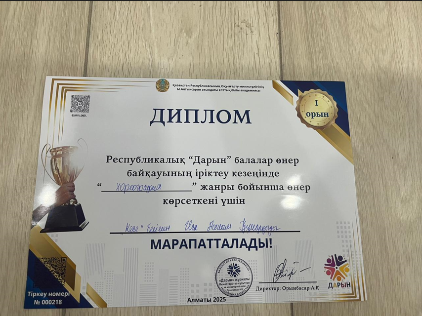 ⚜️⚜️⚜️Республикалық "Дарын" балалар өнер байқауының іріктеу кезеңінде "Хореография" жанры бойынша өнер көрсеткені үшін Иса Асылым Құмарқызы жүлделі I орынмен марапатталды.